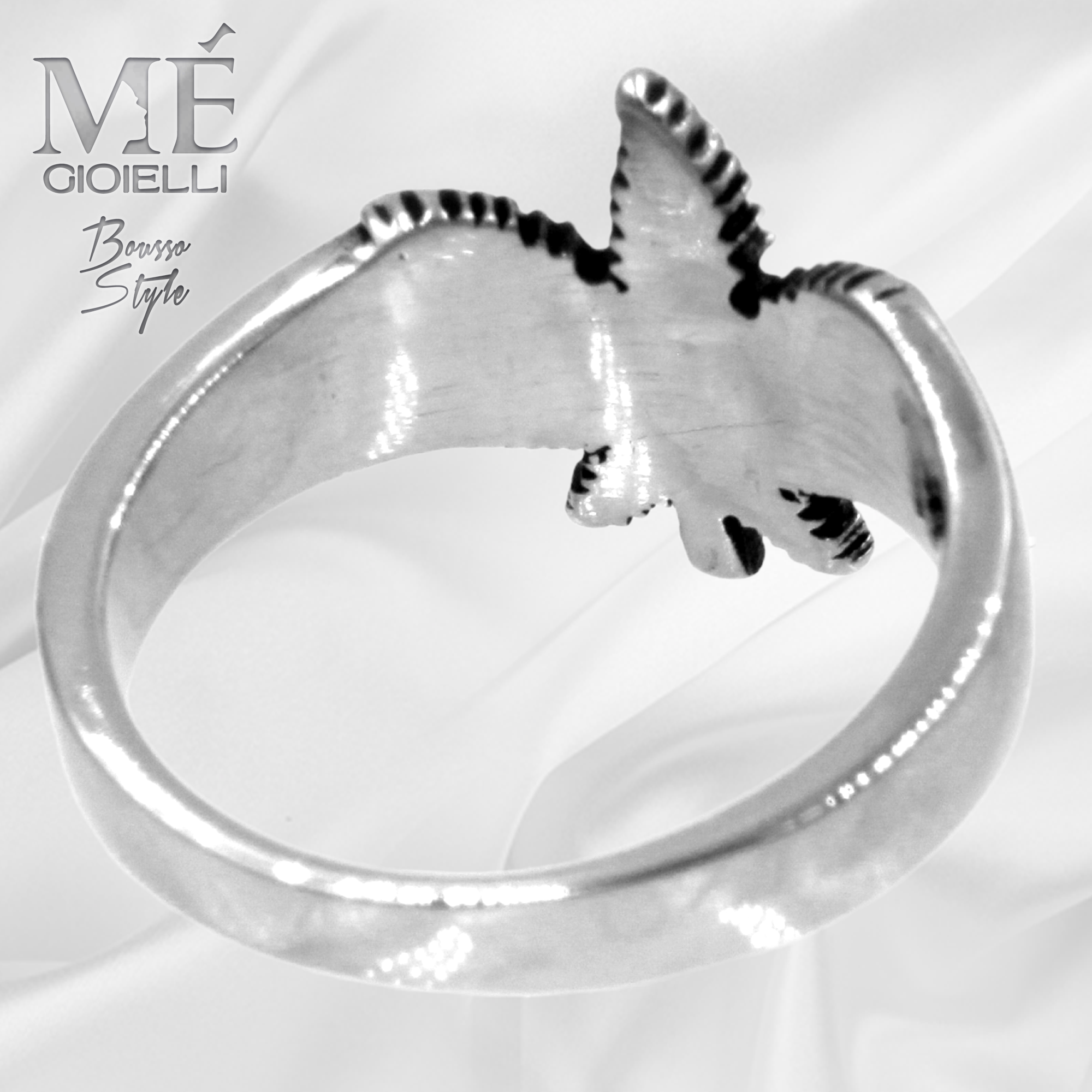 L’Anello Foglia viene spedito confezionato in un sacchetto regalo a sua volta inserito nella shopper loggata Me Gioielli.