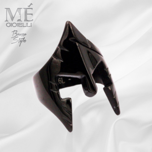 Anello realizzato a mano in acciaio anallergico con la tecnica della cera persa FREE NICHEL e bruniture.