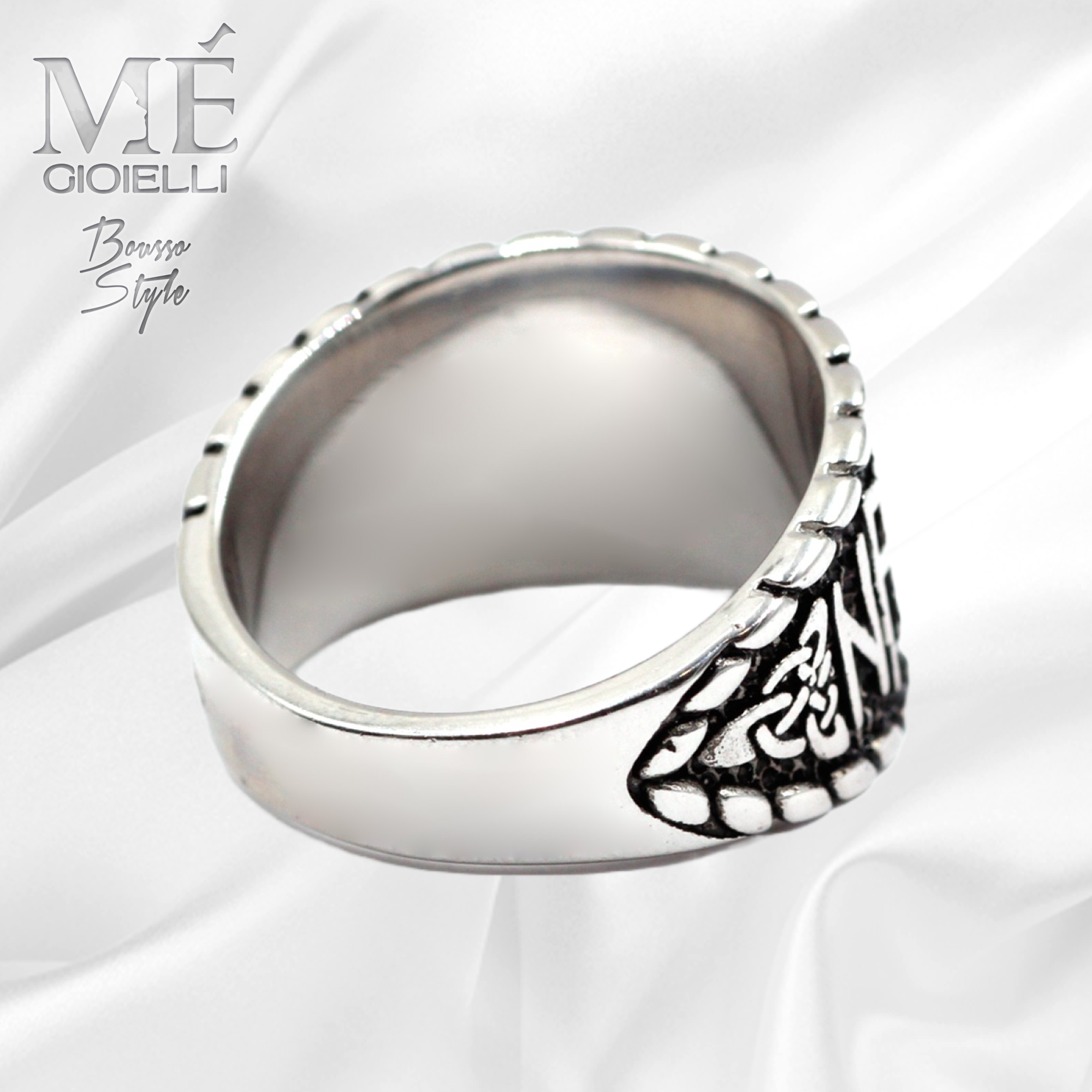 Anello realizzato a mano in acciaio anallergico con la tecnica della cera persa FREE NICHEL e bruniture.