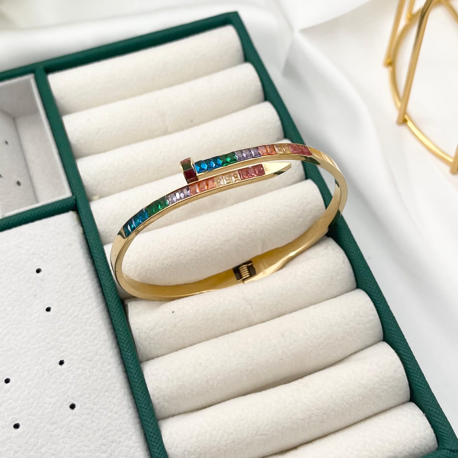 Può essere indossato da solo per un look audace o abbinato ad altri bracciali per un effetto più ricco e personalizzato.