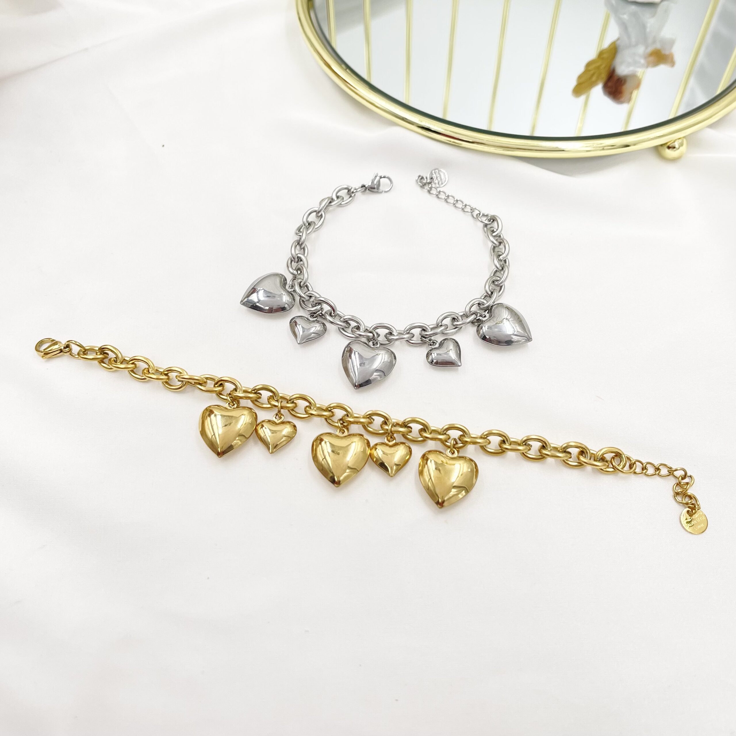 Il Bracciale Cuoricini Bombati in Acciaio Free Nichel: un gioiello irresistibile che aggiunge un tocco di eleganza al tuo look quotidiano.
