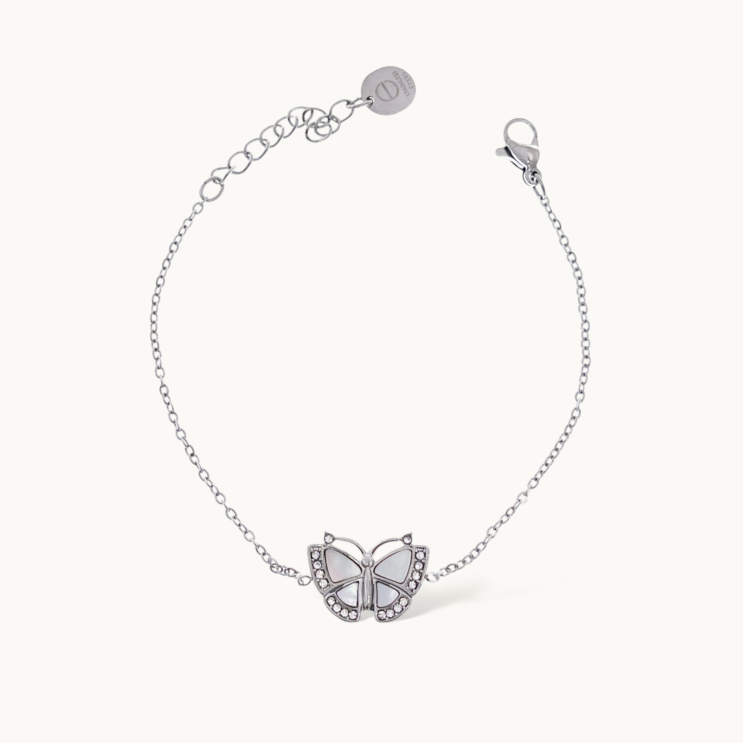 Il Bracciale Farfalla Madreperla è completamente realizzato in acciaio free nichel anallergico.