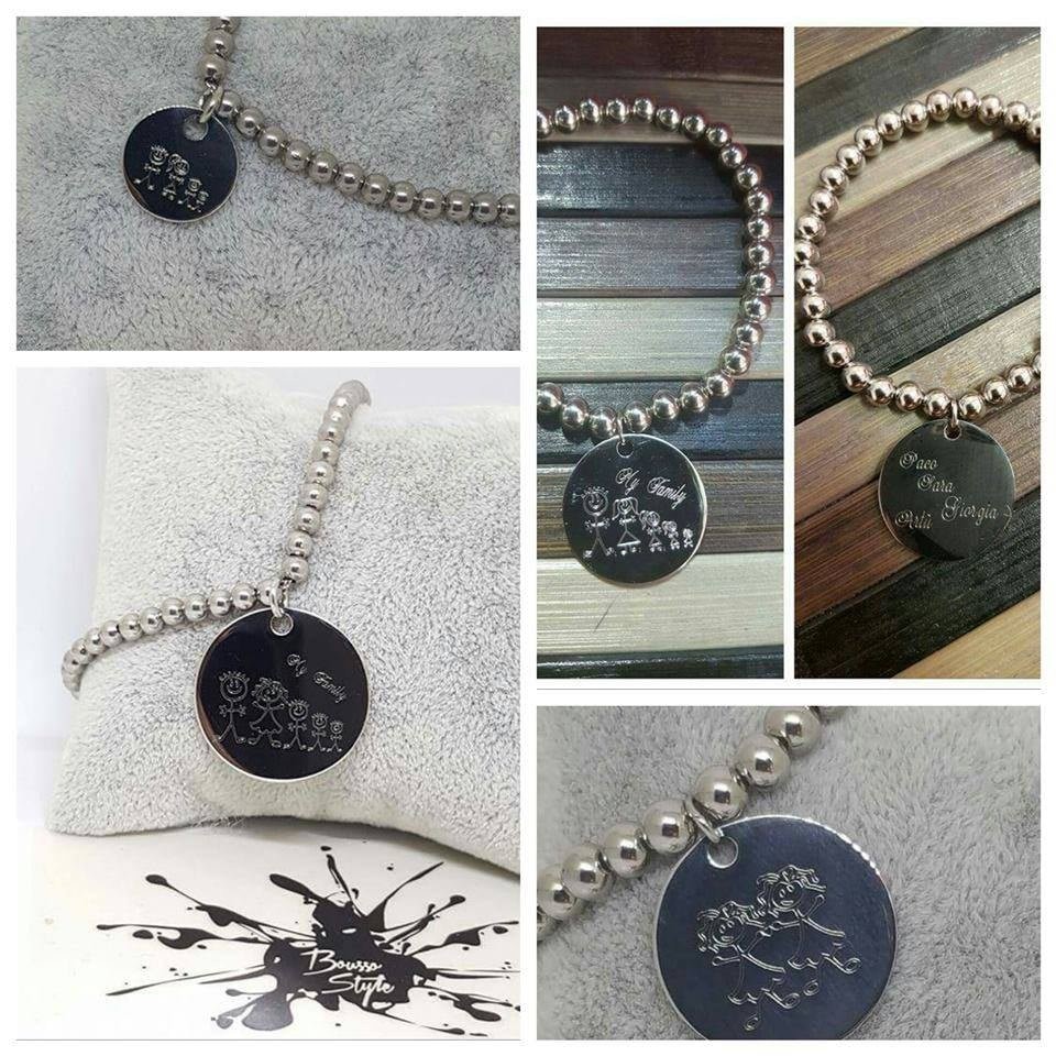 Braccialetto personalizzato in acciaio chirurgico anallergico senza FREE NICHEL, con CIONDOLO PERSONALIZZABILE a forma di cerchio di diametro 2,3cm.