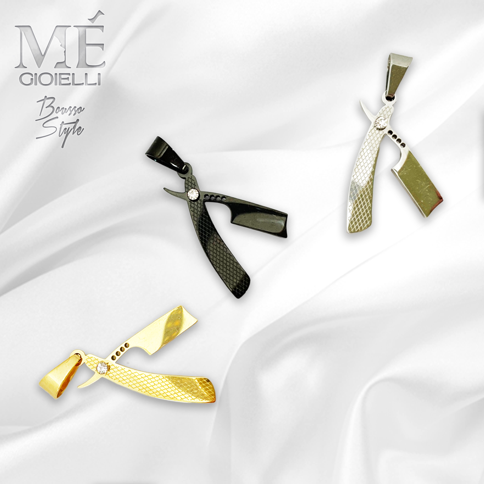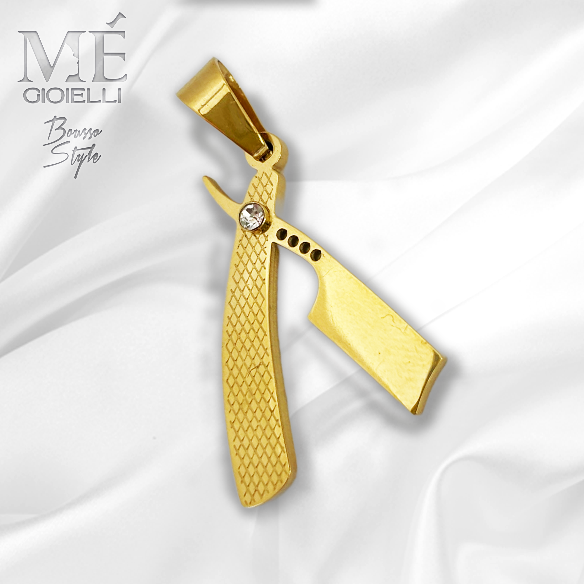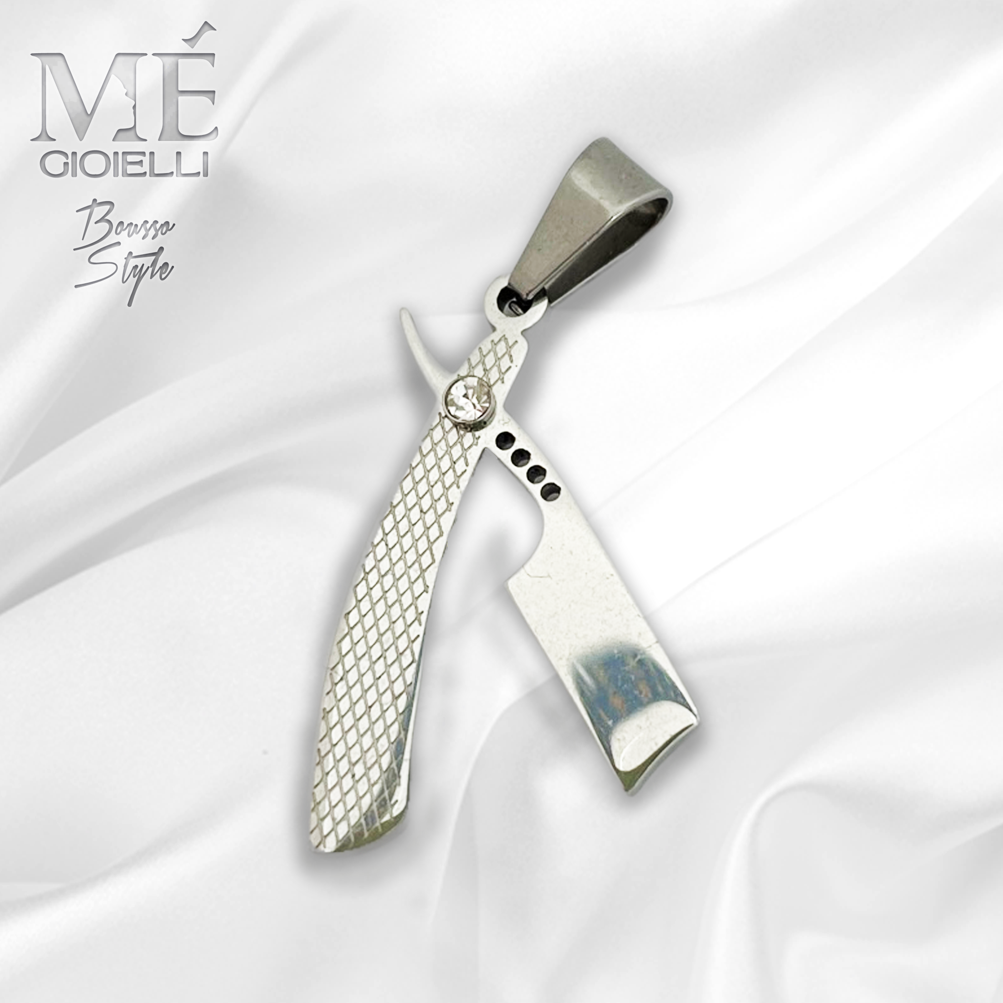 Il Ciondolo Rasoio è completamente realizzati in acciaio inossidabile anallergico.