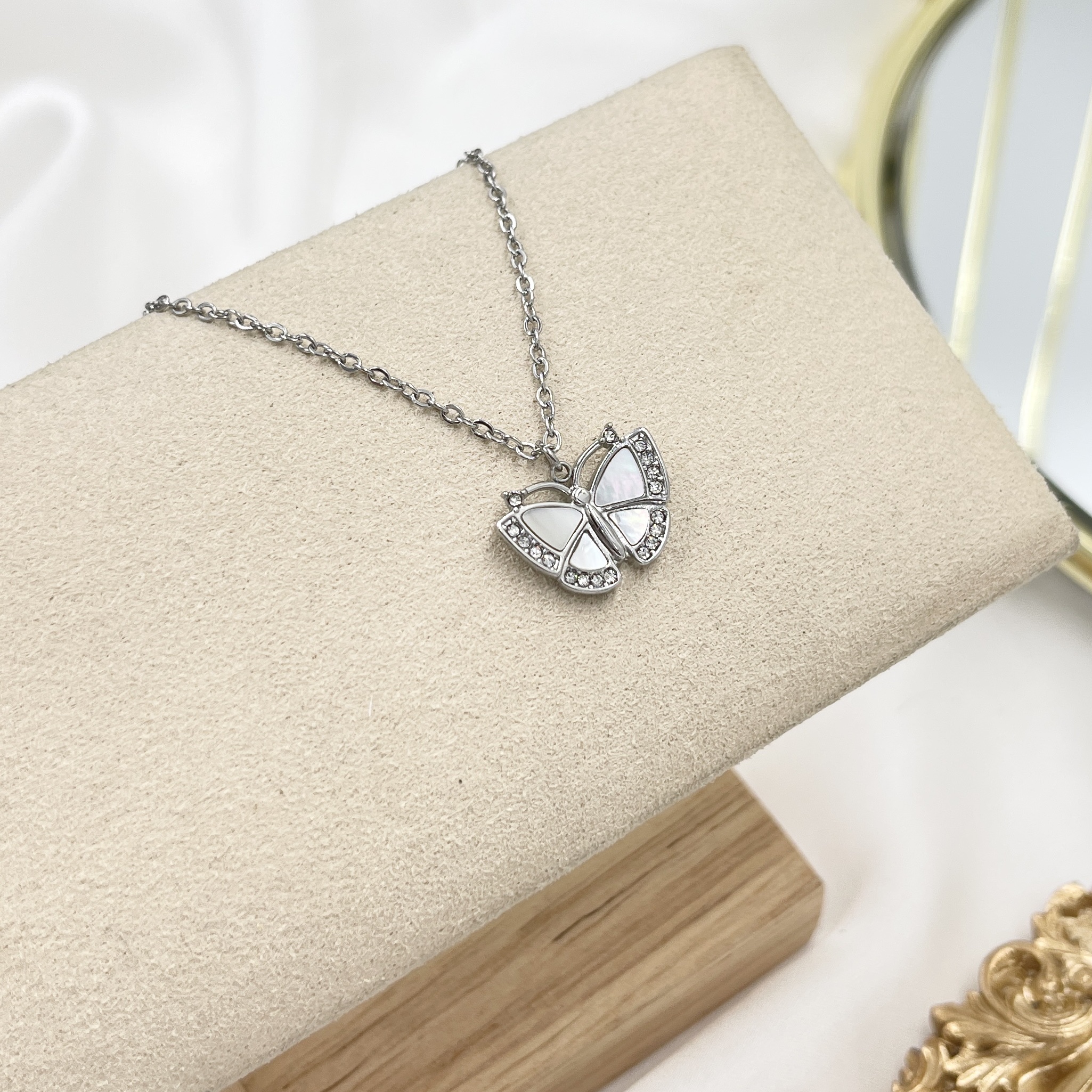 La Collana Farfalla Madreperla è completamente realizzata in acciaio free nichel anallergico.