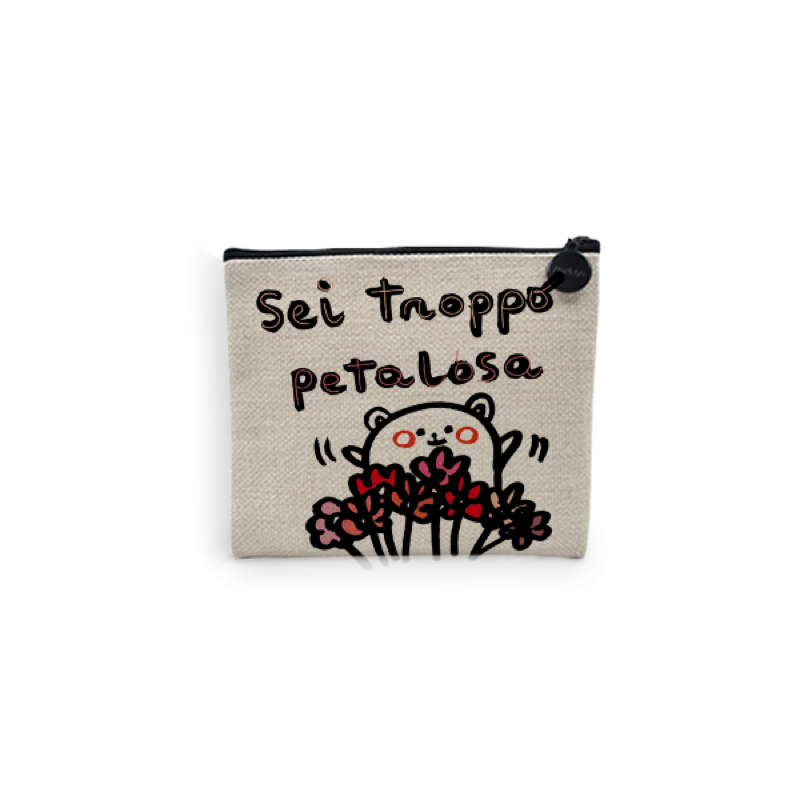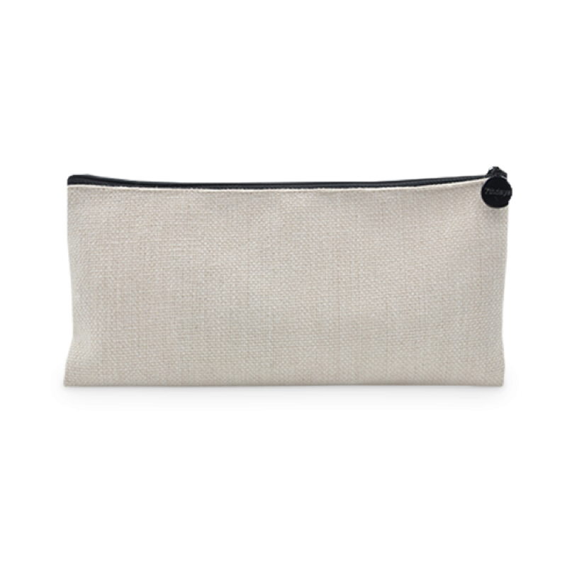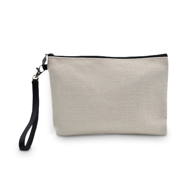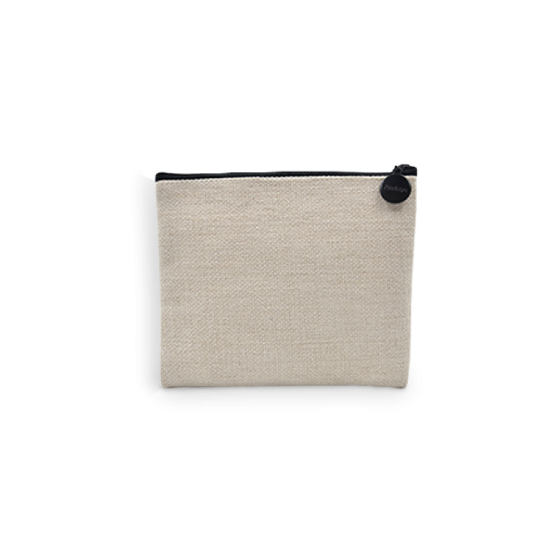 Elegante pochette realizzata in moderno tessuto juta rettangolare con comoda cerniera per la chiusura Personalizzabile.