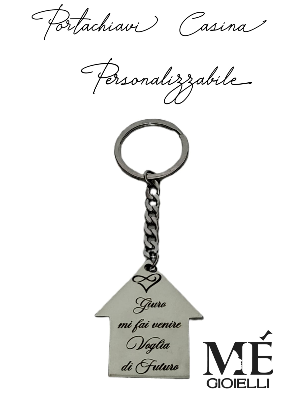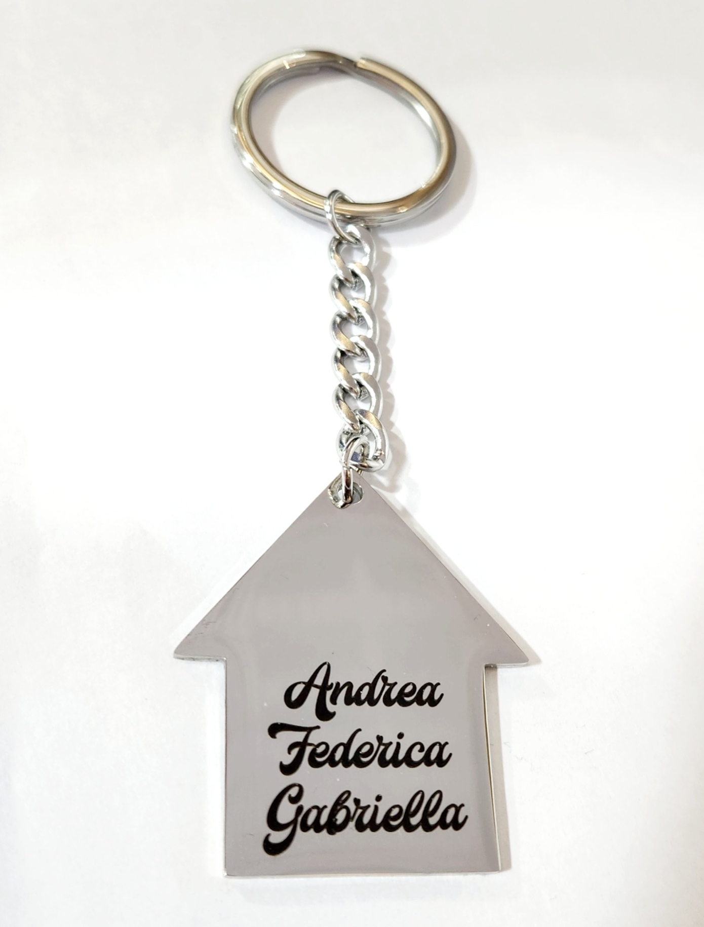 Il regalo Portachiavi Casina Personalizzabile interamente realizzato a mano in Acciaio Inossidabile anallergico.