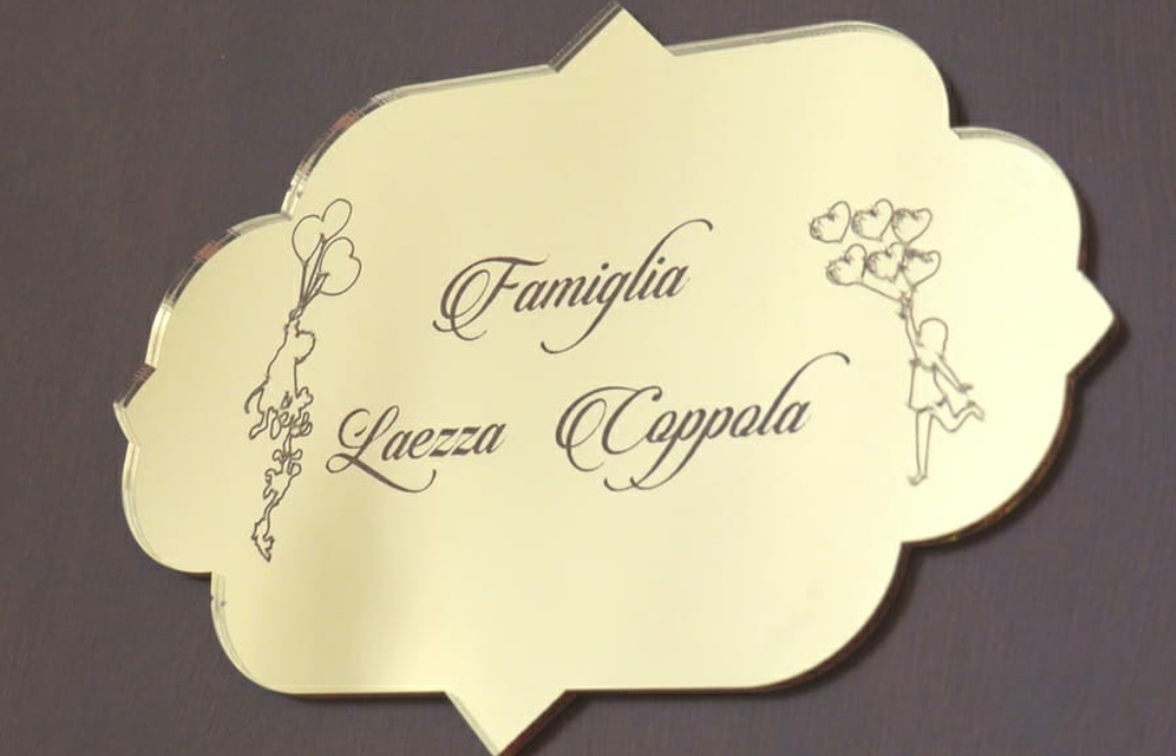 Questo Fuoriporta in plexiglas specchiato personalizzabile col cognome e i componenti della tua famiglia.